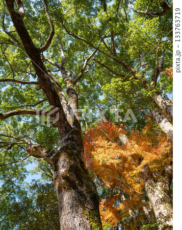 藍天下的冬季懸鈴樹形狀,垂直位置