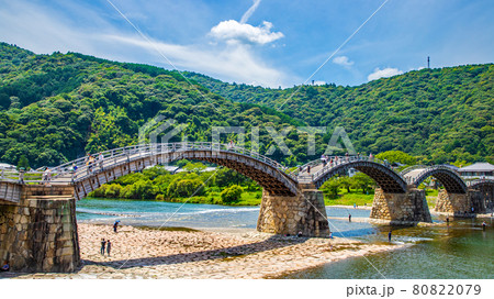 山口縣岩國市天氣晴朗的錦帶橋