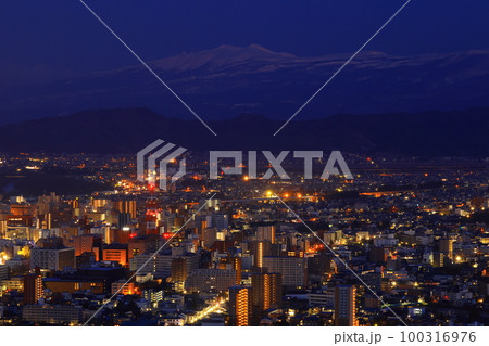 岩手縣盛岡市盛岡市區和黎明時分的岩手山