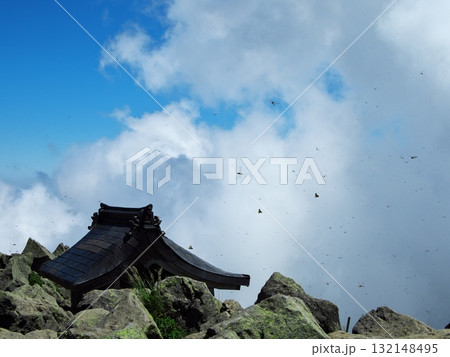 夏季的岩木山神社奧宮,山頂上蜻蜓和蝴蝶翩翩起舞