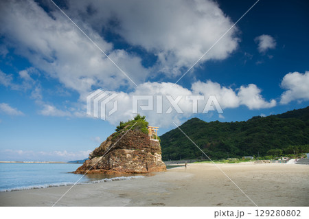 稻佐海灘是島根縣出雲市的旅遊景點之一,夏日天空湛藍
