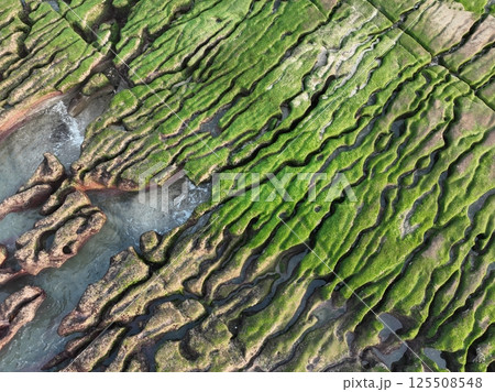 岩手縣久慈市小袖海岸夫婦岩的空中景觀