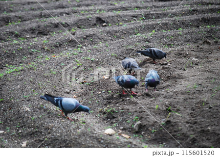 岩鴿在地面上覓食