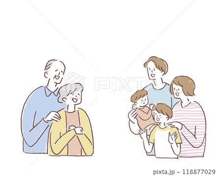 小孩和高級男女,孫子和祖父母,線條圖(水平,居中)