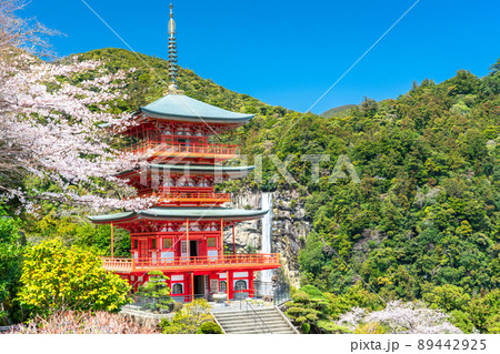 《和歌山縣》春天的那智山三層寶塔