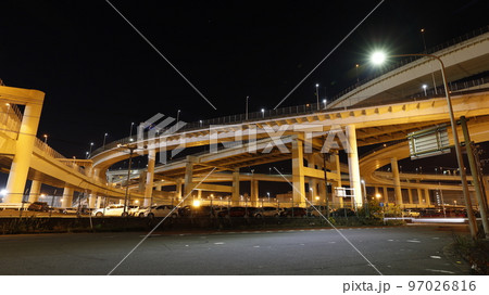 連接首都高速灣岸線和神奈川5號線大黑線的大黑十字路口的夜景