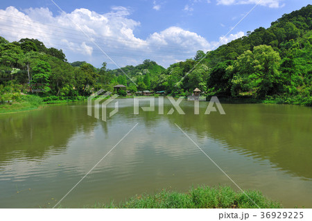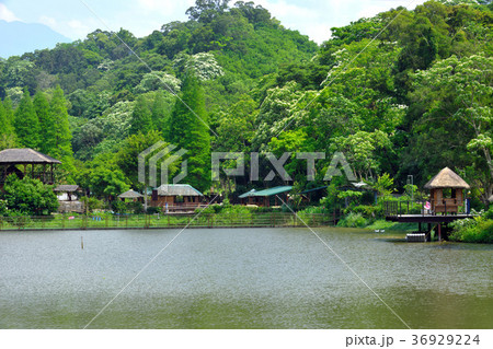 臺灣,新竹,峨眉,樹,水,湖,叁三國家風景區,花,油桐花,開花,植物,特別的,毛草屋