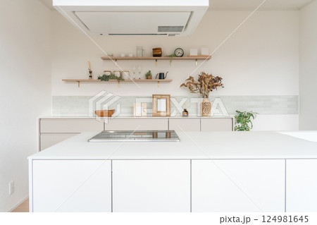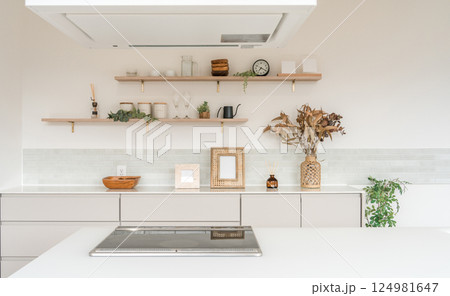 海島系統廚房內部的圖像與單調題材的