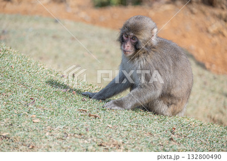 在嵐山猴園岩田山,日本獼猴沐浴在陽光下。