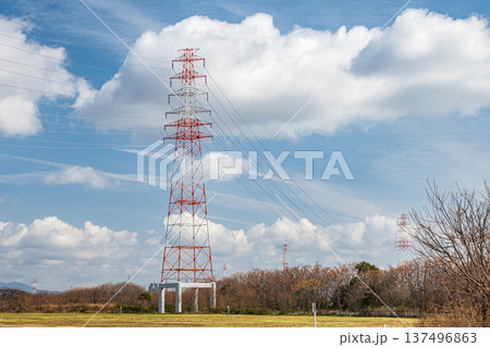 大阪府高槻市淀川右岸河床上矗立著一座輸電塔。