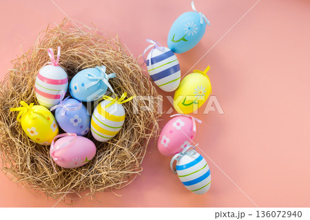 粉紅色背景上的復活節彩蛋