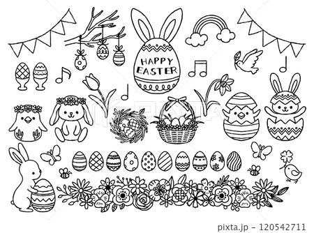 手繪風線畫插圖集可愛的複活節食物