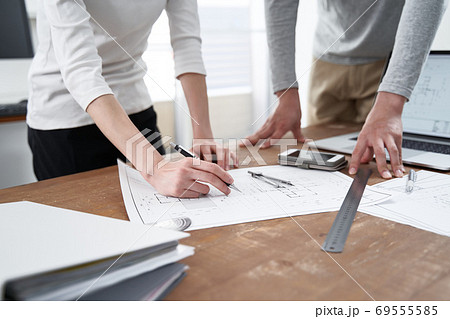 亞洲建築師在建築圖紙上寫作