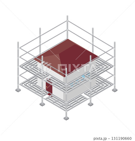 房屋周圍的建築鷹架(等距圖)