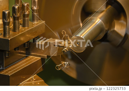A man in a hardhat and mechanic coverall dust protection suit using a machine to shape metal parts safely. Atmosphere in manufactory with large machinery.