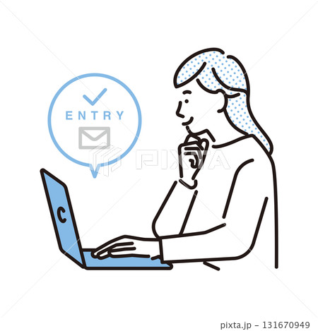 一位女士在電腦上申請工作的簡單插圖