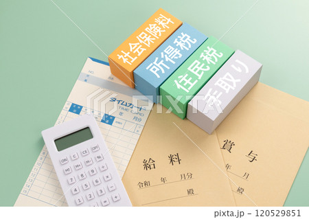 薪資單和計算器的圖像