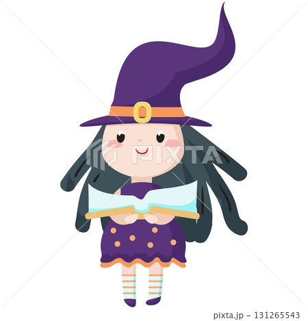 Cute cartoon girl in witch costume for halloween.