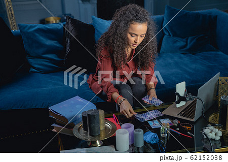 Young female laying out the tarot cards