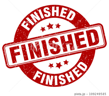 Completed vector grunge red stamp icon. Finished mission project rubber stamp sign design
