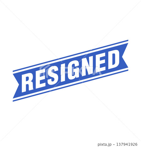 Blue color speech banner with word resigned on white background