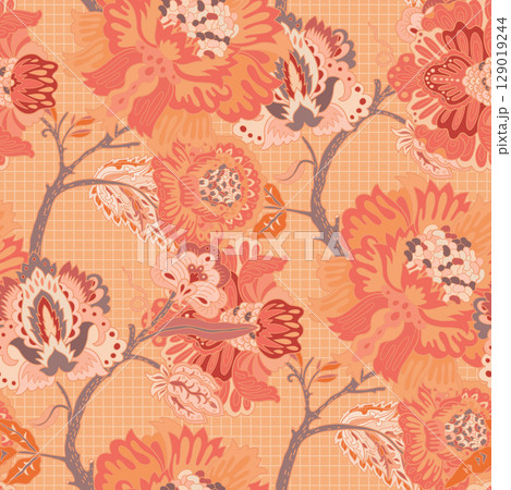 Seamless floral pattern with flowers leaves branch retro style with isolated white backgrounds for screen printing, paper craft printable, wedding invitations covers, stationery designs, fabric prints