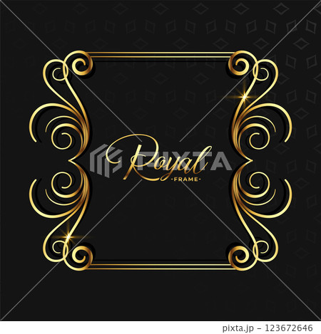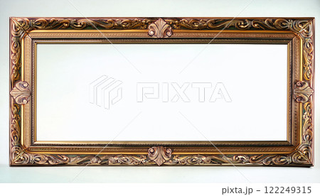 Ornate decorative frame illustration with intricate vintage baroque floral border, empty center, black outline, AI Generative