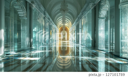 A grand hall with ornate gold accents and green walls. Luxurious interior design.