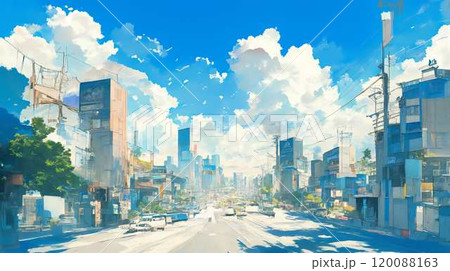大城市路口的陽光明媚的風景和藍天漂浮的白雲