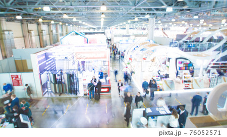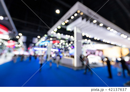 Abstract blured people at exhibition hall of expo event trade show. Business convention show or job fair. Business concept background.