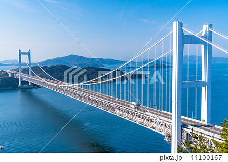 穿過藍天的瀨戶內海的瀨戶大橋(下水瀨戶大橋)
