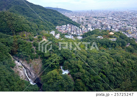 Kobe Haibu Herb Park從索道觀察瀑布和住宅區