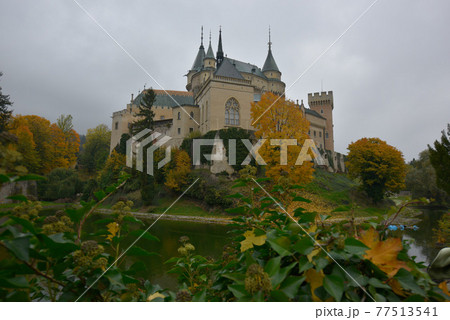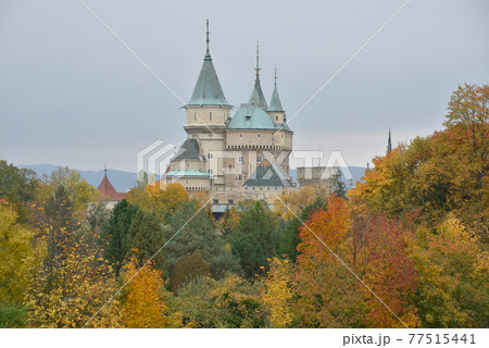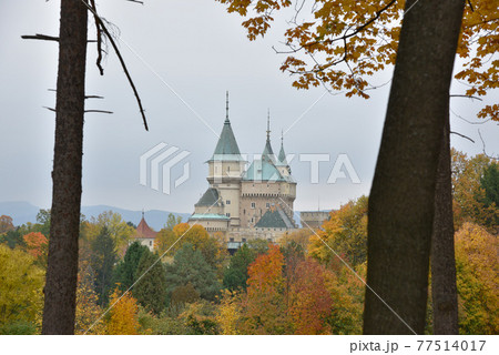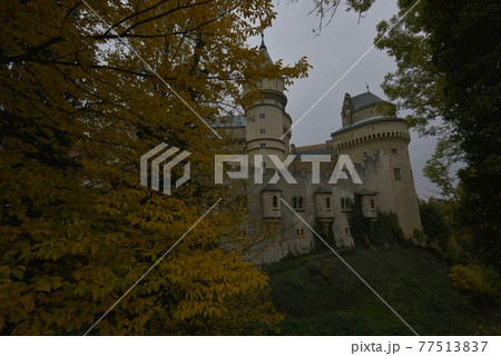 美麗的秋天楓葉,夢幻浪漫的濱尼基里城堡要塞。