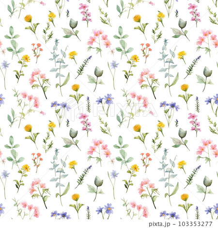 可愛的水彩小花朵圖案無縫背景圖AI圖像