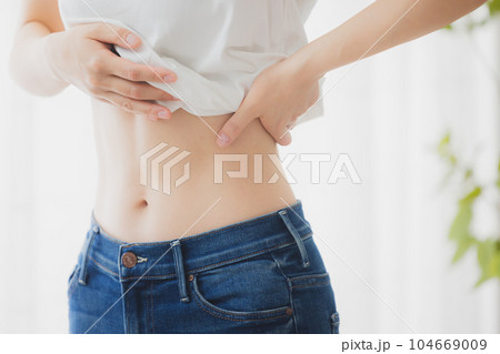 女人在鏡子裡檢查她的肚子