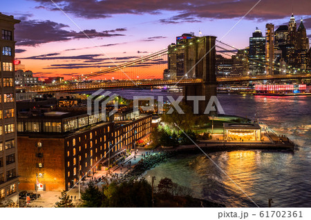 《紐約》曼哈頓大橋和布魯克林大橋的夜景,布魯克林大橋公園的景緻