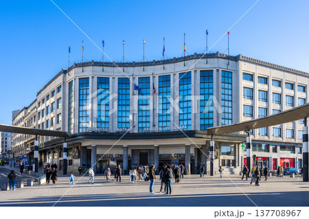 比利時布魯塞爾中央車站的外觀以及車站廣場的景色。