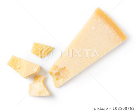 Piece of parmesan cheese isolated on white background
