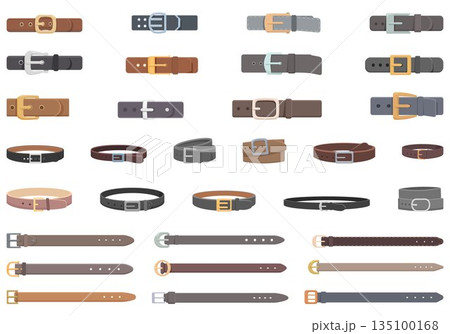 Belt icons set cartoon vector. Buckle leather