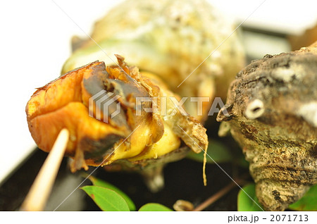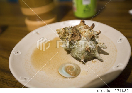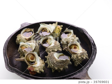 新鮮捕獲的Sazae Sazae烤Sazae生魚片生魚片,燒烤和海鮮菜餚