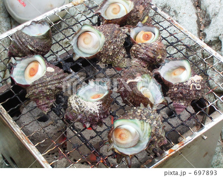 烤Sazae,燒烤,燒烤,炭火烤,烤,民丹島木炭,七蘭,營地,膳食,食品,Sazae,Eiji