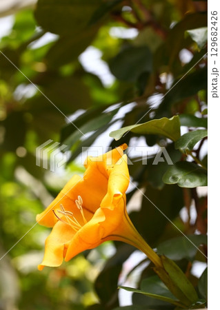 Ariakekasuzuru(夾竹桃科),開著令人印象深刻的亮黃色花朵