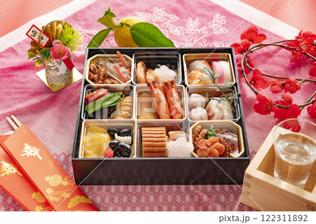 背景壁紙材質與 osechi 美食圖案,紅色