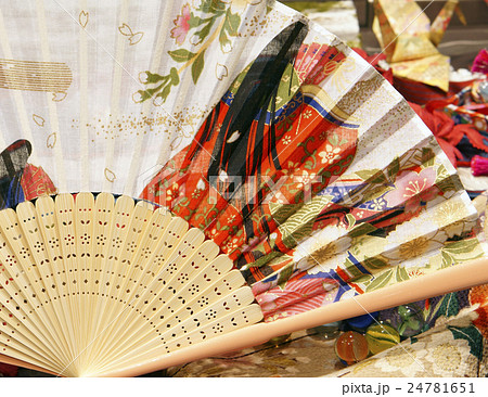 描繪《源氏物語》服裝的插圖,折扇作為日本特產很受歡迎