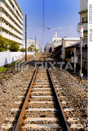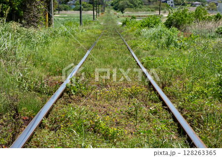 白日里一片寂靜,和田塚線的鐵軌筆直地向前延伸。