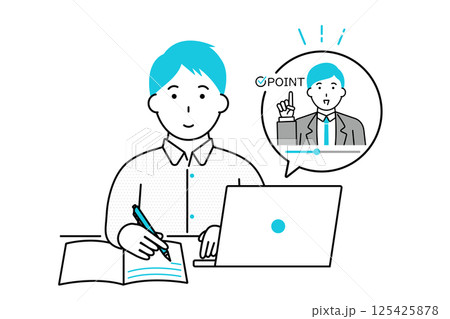 一名年輕人透過線上學習獲得資格證書並提高技能的插圖