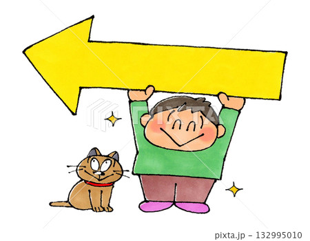 一個簡單的插圖,一個穿著圍裙的男人用手指著解釋某事 - 黃色