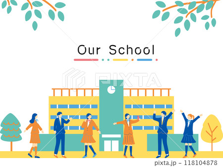 身穿水手服的少女。身穿夏季校服的男女學生。向量插圖素材