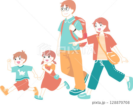 插畫資料:入學典禮畢業典禮父母子女(男孩和父母)櫻花樹