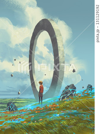 Boy Standing Before Mysterious Stone Ring